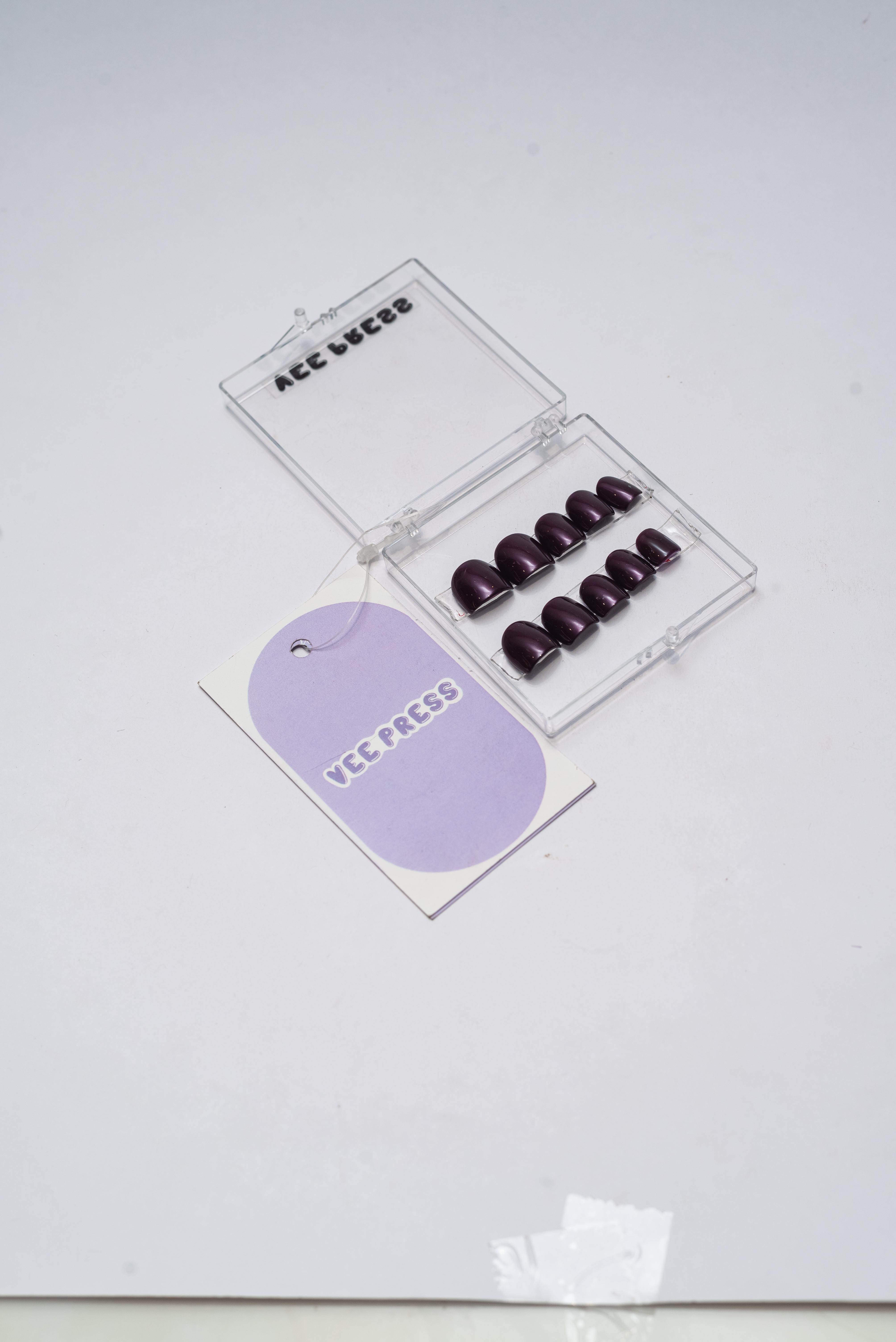 BLACKCURRANT BLISS : THESE PERFECT PRESONS ARE RICH , DEEP WITH OPAQUE COVERAGE OF PURPLE RED SHADE INSPIRED BY BLACKCURRNT FRUIT .THESE NAIL ARE PERFECT FOR WINTER AND FALL SEEKING BOLD SOPHISTICATED COLOR