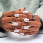 Gently peel off the adhesive backing and press the nails onto your natural nails.